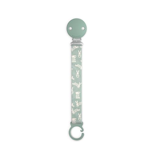 Suavinex, Attache Tétine en Tisu, Chaîne Attache-Sucette avec Clip et Plaque en Silicone, pour Sucettes avec Anneau, Accrocher aux vêtements ou Accessoires, Bébés +0 Mois, Wonderland Vert Lapin