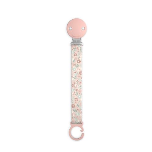 Suavinex, Attache-tétine en Tissu pour Bébé, Ruban Doux et Flexible, Chaîne - Pince avec Clip. Compatible avec Toutes les Sucettes à Anneau, +0 Mois, Convient Nouveau-nés, Poetry Rose