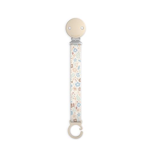 Suavinex, Attache Tétine en Tisu, Chaîne Attache-Sucette avec Clip et Plaque en Silicone, pour Sucettes avec Anneau, Accrocher aux vêtements ou Accessoires, Bébés +0 Mois, Wonderland Beige Floral