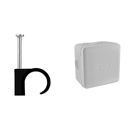 DEBFLEX Attache Câble, Range Câble, Fixation Câble électrique, Clips Câble, Serre Câble, Cavalier Câble, Attache, câble avec Clou Acier, 50 Attache Fils D16/19 Noir 700466
