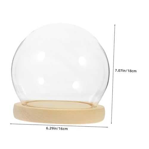 SUPVOX Cloche en Verre Sphérique Transparente avec Base en Bois Naturel Vitrine Miniature Anti-Poussière pour Fleurs Séchées Décor Jardin et Terrarium Accessoire D’Exposition Élégant