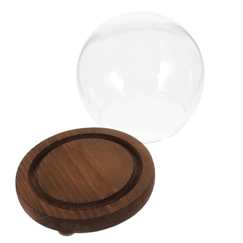 STOBAZA Cloche en Verre Transparente avec Base en Bois, Dôme Sphérique 12 Cm pour Micro-Paysage, Décoration Jardin et Intérieur, Protection Anti-poussière pour Fleurs Préservées