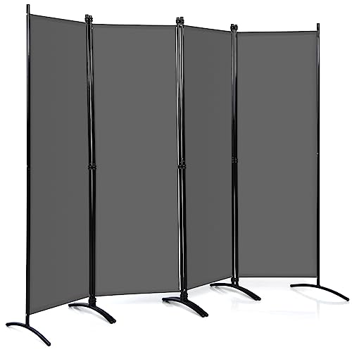 Giantex Paravent Intérieur avec 4 Panneaux, Cloison de Séparation Pliante avec Cadre en Fer Robuste, Séparateurs de Pièces Extérieur, 220x55x173 cm (Gris)