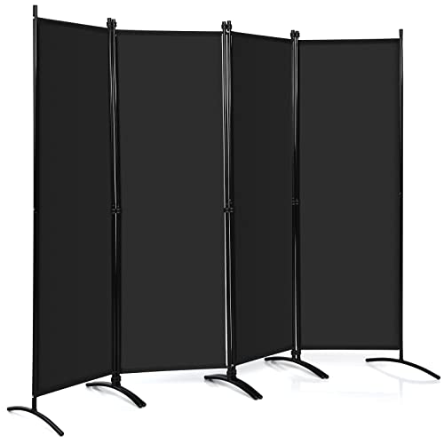 Giantex Paravent Intérieur avec 4 Panneaux, Cloison de Séparation Pliante avec Cadre en Fer Robuste, Séparateurs de Pièces Extérieur, 220x55x173 cm (Noir)