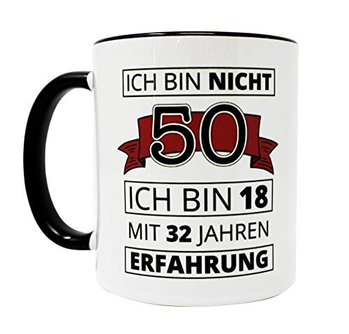 Close Up Tasse en céramique pour 50e anniversaire avec inscription en allemand « Ich bin nicht 50 » - Blanc - Passe au lave-vaisselle - Capacité : 320 ml