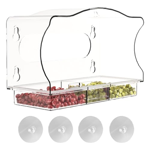 Mangeoire à oiseaux pour fenêtre – Plateau d'alimentation amovible, boîte de visualisation transparente | Mangeoire à ventouse sécurisée pour jardin, clôture en verre, balcon, extérieur, observer les