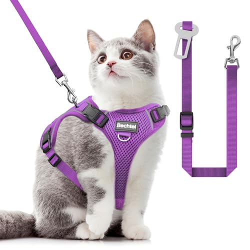 Best Pet Supplies Voyager Ensemble Harnais et Laisse Anti-Fugue pour Chat avec Coutures réfléchissantes, poignée néoprène, 1,5 m, pour Chats de Petite, Moyenne et Grande Taille, Violet, Taille XXXS