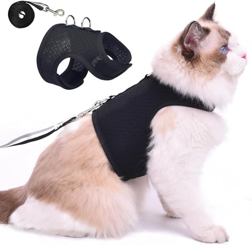 Filbert Ensemble harnais et laisse pour chat avec bande réfléchissante, harnais anti-fugue avec laisse pour chat, harnais de voyage réglable pour chat, harnais pour chat pour promenade et extérieur,