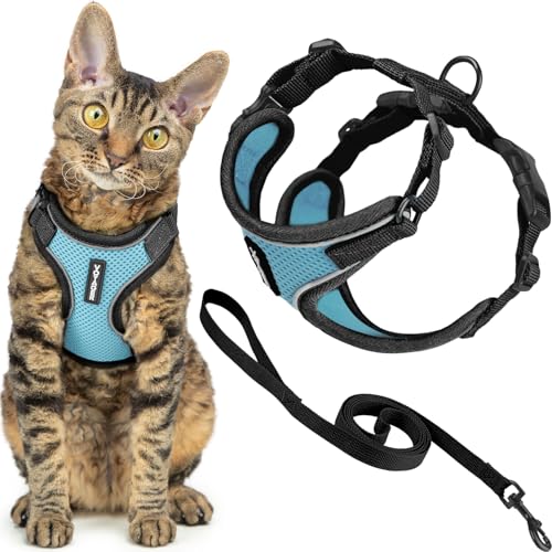 Best Pet Supplies Voyager Ensemble harnais et laisse anti-fugue pour chat avec coutures réfléchissantes, poignée en néoprène de 1,5 m, convient pour les chats de petite, moyenne et grande taille, bleu