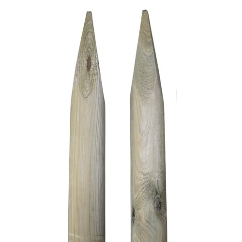 TIMBERMIK ø 5cm Lot de 4 Piquet Cloture Bois Longueur: 180 cm Poteaux De Clôture De Jardin Imprégné Résistant Aux Intempéries Palissade Tuteurs avec Pointe Couleur Olive