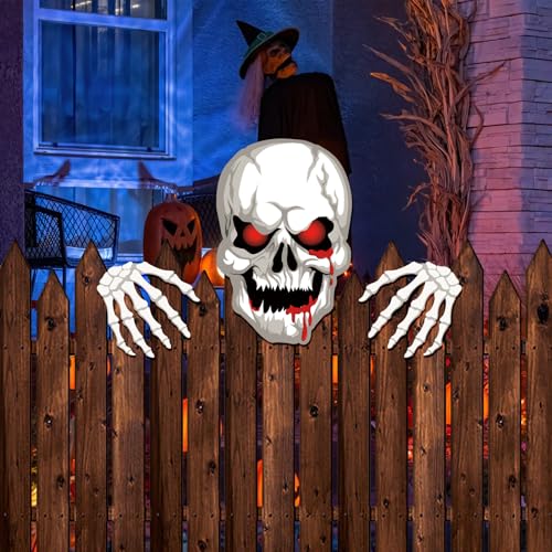 Clôture Décoration Halloween, Squelette Clôture Vacances Décoration Extérieure Durable de Ornement de Signe de Jardin de Halloween en Plein air Décor de Signes de Cour