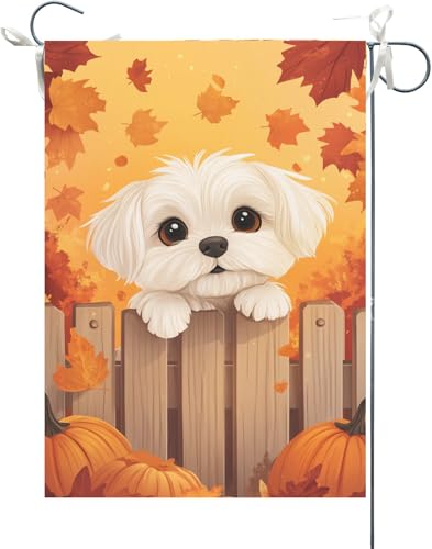 Drapeaux De Jardin Clôture Pour Chien Maltais En Position Couchée, Idéale Pour Thanksgiving En Automne Drapeau Fierté Drapeaus Décoratif Couleurs Vives Bannières Extérieure Pour 30X45CM