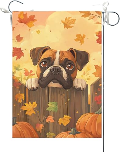 Drapeaux De Jardin Clôture Pour Chien Boxer Couché, Automne, Thanksgiving Drapeaus Décoratif Imperméabiliser Bannières Extérieure Couleurs Vives Drapeau Fierté Pour Festivals Défilé 30X45CM