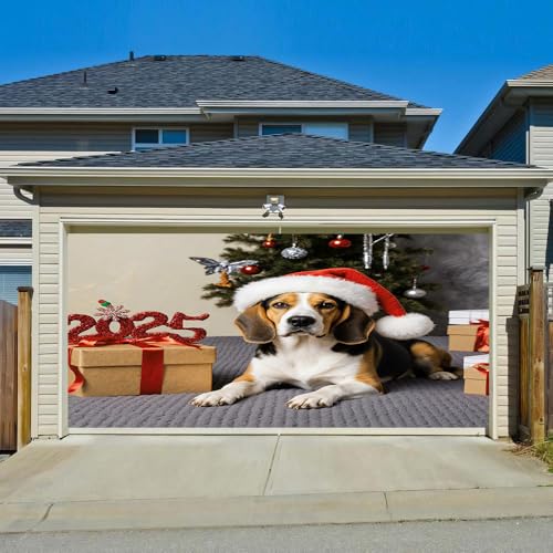 Hiseng 3D Bannière d'Noël, Rouge Grande Bannière Garage, Intérieur Extérieur Décoration Fête Fournitures pour Fond Photo, Maison, Jardin, Clôture Garage (Chien de Noël,210x240cm)