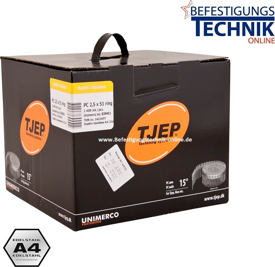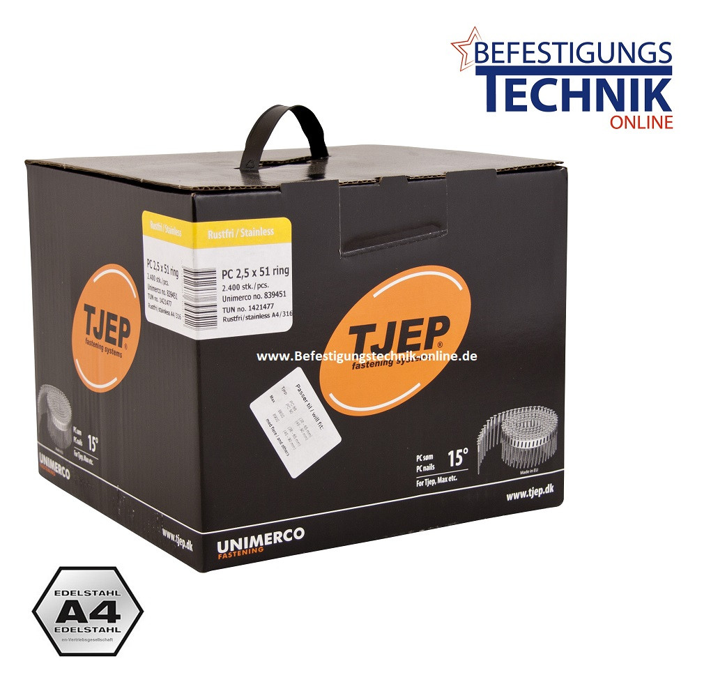 PC Clous pour bobines 2,5x51mm anneau inox A4 15° plast pour cloueur de bobines Bostitch N75C-2-E 2,4M