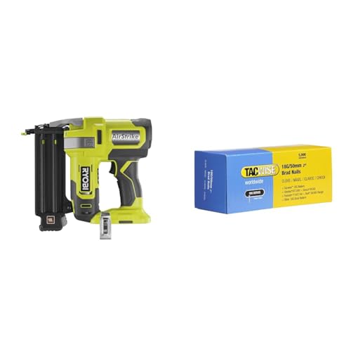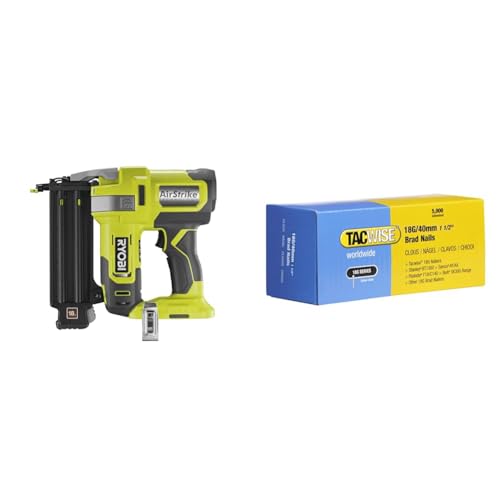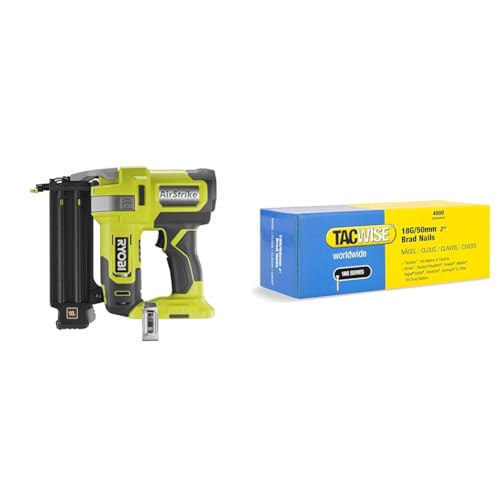 RYOBI - Cloueur d'Assemblage 18G à Air Comprimé 18V ONE+ pour Tirer des Clous de 15 à 50 mm & TACWISE 1710 Clous de Finition Brad Galvanisés de Type 18G / 25 mm, Lot de 4,000