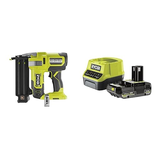 Ryobi - Cloueur d'assemblage 18G à air comprimé 18V - pointe de 15 à 50 mm - tête 1,2 mm - chargeur 105 pointes - Livré avec 500 pointes, 1 batterie 2Ah et 1 chargeur rapide