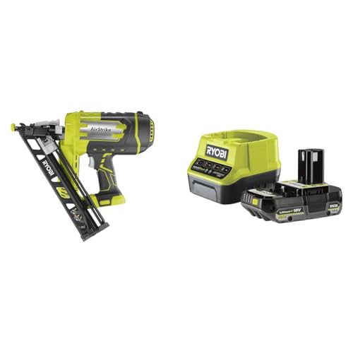 Pack RYOBI Cloueur de finition incliné à air comprimé R15GN18-0 - 18V One+ - 1 batterie 2.0Ah - 1 chargeur rapide RC18120-120