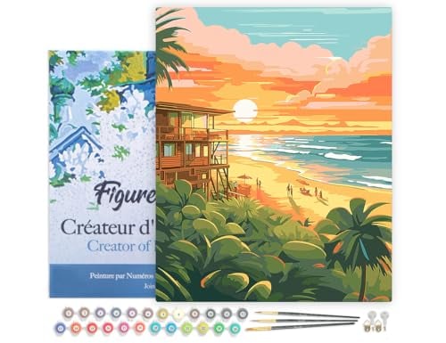 Figured'Art Peinture par Numéro Adulte Club de plage au coucher du soleil - Activité Manuelle Kit de Loisir Créatif DIY Numéro d'Art Complet - 40x50cm sans châssis en bois