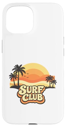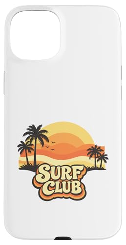 Surf Club Coucher de Soleil Vintage Palmiers Rétro Coque pour iPhone 15 Plus