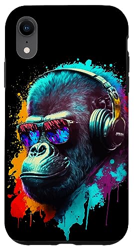 Gorille Singe DJ Casque Lunettes de Soleil Coloré Club Coque pour iPhone XR