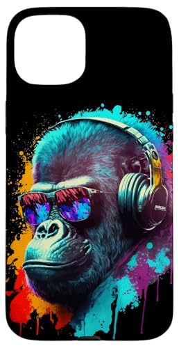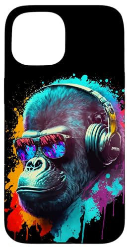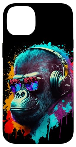 Gorille Singe DJ Casque Lunettes de Soleil Coloré Club Coque pour iPhone 15 Plus