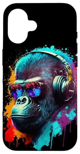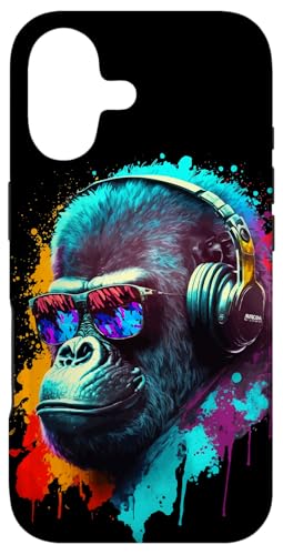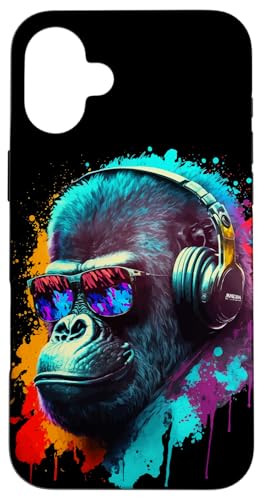 Gorille Singe DJ Casque Lunettes de Soleil Coloré Club Coque pour iPhone 16 Plus