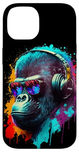Gorille Singe DJ Casque Lunettes de Soleil Coloré Club Coque pour iPhone 15