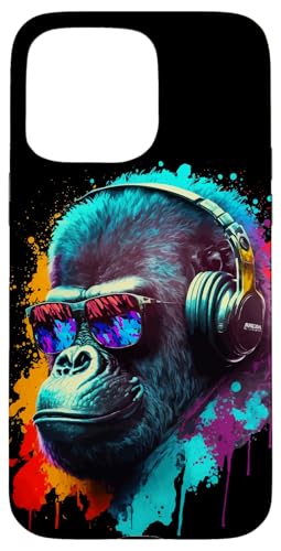 Gorille Singe DJ Casque Lunettes de Soleil Coloré Club Coque pour iPhone 15 Pro Max