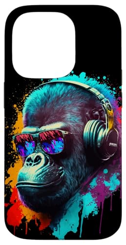 Gorille Singe DJ Casque Lunettes de Soleil Coloré Club Coque pour iPhone 14 Pro