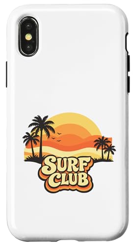 Surf Club Coucher de Soleil Vintage Palmiers Rétro Coque pour iPhone X/XS