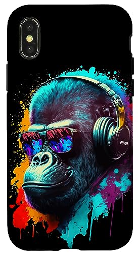 Gorille Singe DJ Casque Lunettes de Soleil Coloré Club Coque pour iPhone X/XS