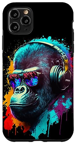 Gorille Singe DJ Casque Lunettes de Soleil Coloré Club Coque pour iPhone 11 Pro Max
