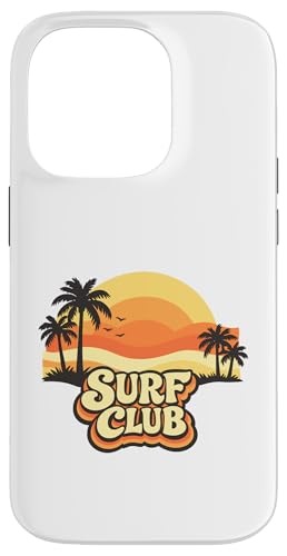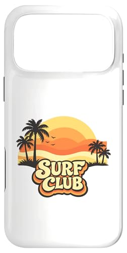 Surf Club Coucher de Soleil Vintage Palmiers Rétro Coque pour iPhone 14 Pro