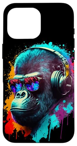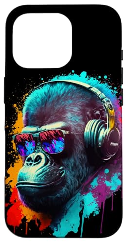 Gorille Singe DJ Casque Lunettes de Soleil Coloré Club Coque pour iPhone 16 Pro