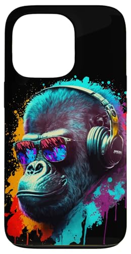 Gorille Singe DJ Casque Lunettes de Soleil Coloré Club Coque pour iPhone 13 Pro