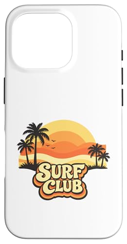 Surf Club Coucher de Soleil Vintage Palmiers Rétro Coque pour iPhone 16 Pro Max