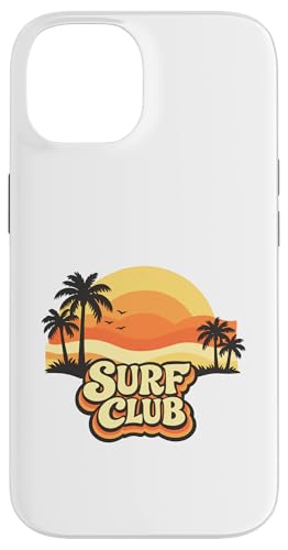 Surf Club Coucher de Soleil Vintage Palmiers Rétro Coque pour iPhone 14 Plus