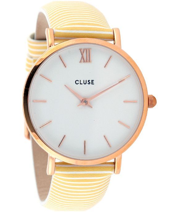 Cluse Montre Femme Minuit Rose Gold Blanc-Sunny Yellow Stripes CL30032