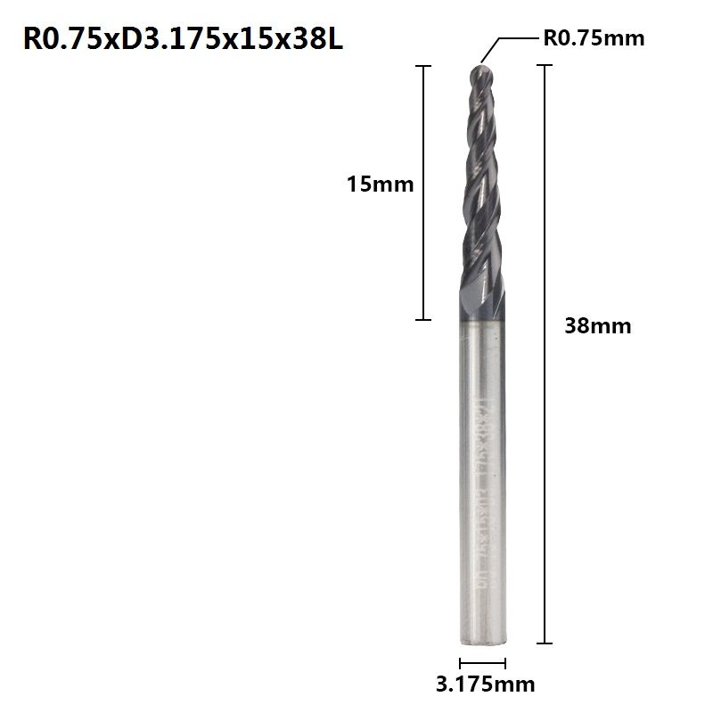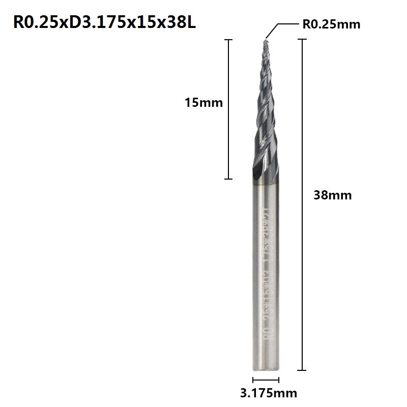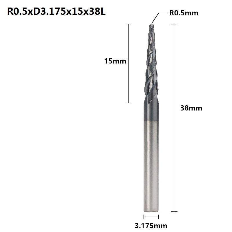 R0.25xD3.175x15x38L Fraise à bout conique en carbure de tungstène R0.25-R2.0 CNC, fraises pour bois et métal, outil de fraisage CNC ""Nipseyteko