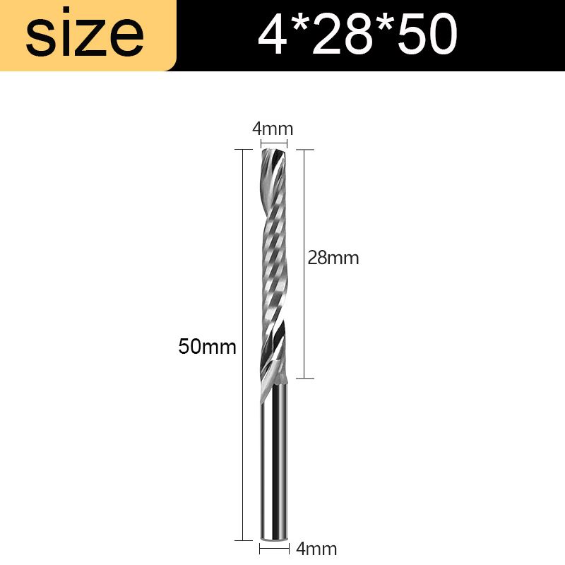 4x4x28 1pcs Fraises à spirale en carbure de tungstène, 1 cannelure, outils CNC pour bois acrylique MDF 3.175 4 6 8mm ""Nipseyteko