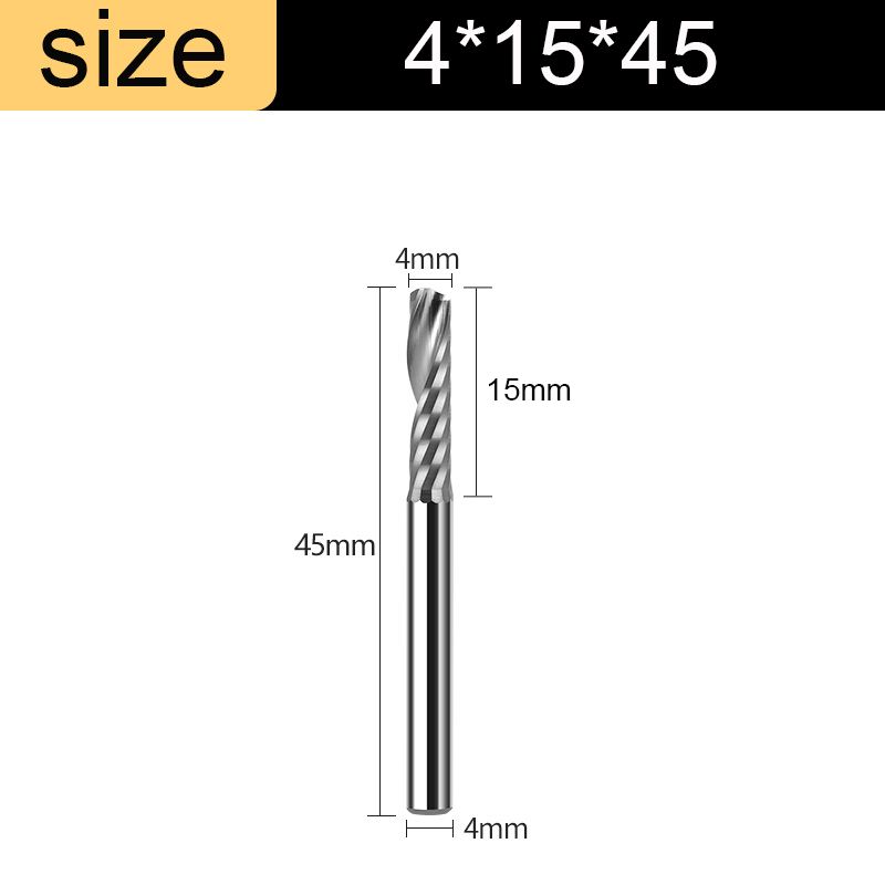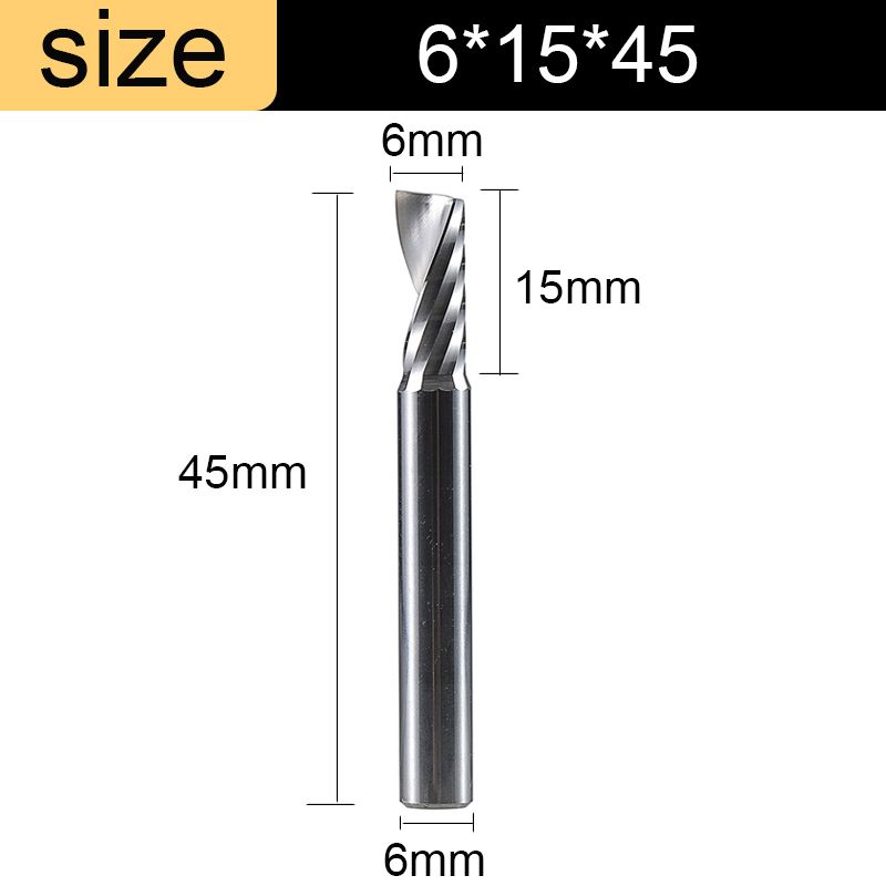 6x15x45 1pcs Fraises à spirale en carbure de tungstène, 1 cannelure, outils CNC pour bois acrylique MDF 3.175 4 6 8mm ""Nipseyteko