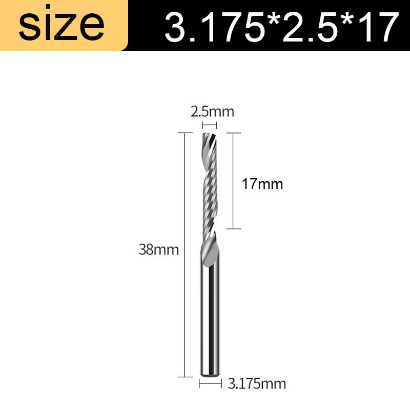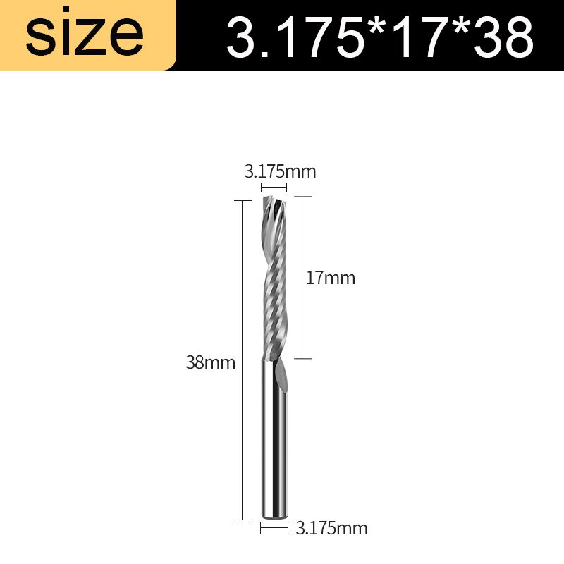 3.175x3.175x17 5pcs Fraises à spirale en carbure de tungstène, 1 cannelure, outils CNC pour bois acrylique MDF 3.175 4 6 8mm ""Nipseyteko