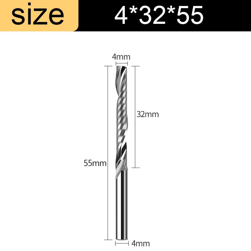 4x4x32 1pcs Fraises à spirale en carbure de tungstène, 1 cannelure, outils CNC pour bois acrylique MDF 3.175 4 6 8mm ""Nipseyteko