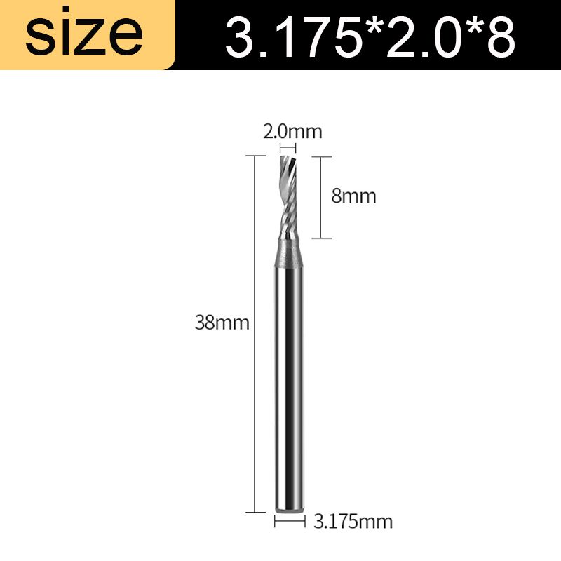 3.175x2x8 5pcs Fraises à spirale en carbure de tungstène, 1 cannelure, outils CNC pour bois acrylique MDF 3.175 4 6 8mm ""Nipseyteko