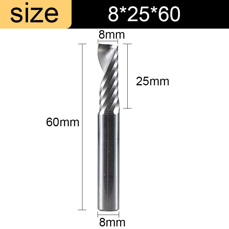 8x25x60 1pcs Fraises à spirale en carbure de tungstène, 1 cannelure, outils CNC pour bois acrylique MDF 3.175 4 6 8mm ""Nipseyteko