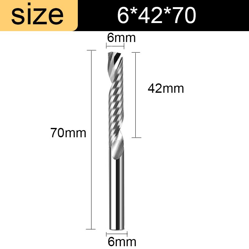 6x42x70 1pcs Fraises à spirale en carbure de tungstène, 1 cannelure, outils CNC pour bois acrylique MDF 3.175 4 6 8mm ""Nipseyteko