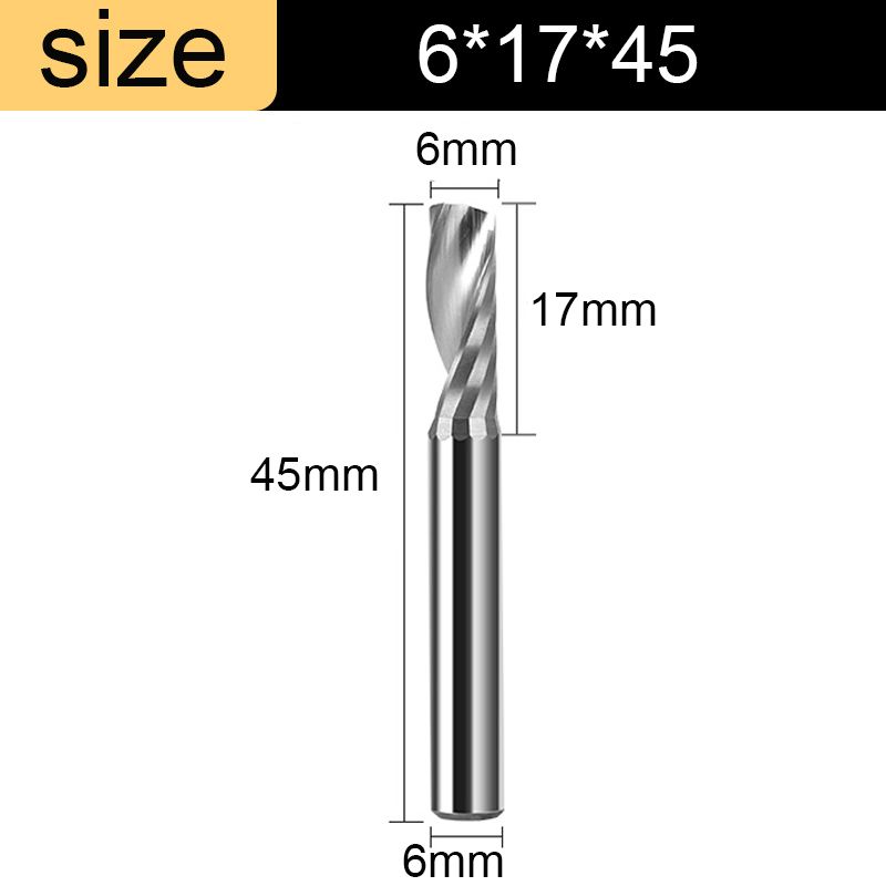 6x17x45 1pcs Fraises à spirale en carbure de tungstène, 1 cannelure, outils CNC pour bois acrylique MDF 3.175 4 6 8mm ""Nipseyteko