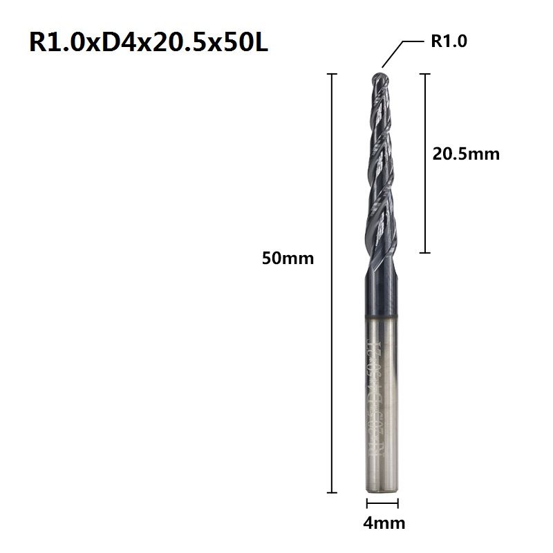 R1.0xD4x20.5x50L Fraise à bout conique en carbure de tungstène R0.25-R2.0 CNC, fraises pour bois et métal, outil de fraisage CNC ""Nipseyteko