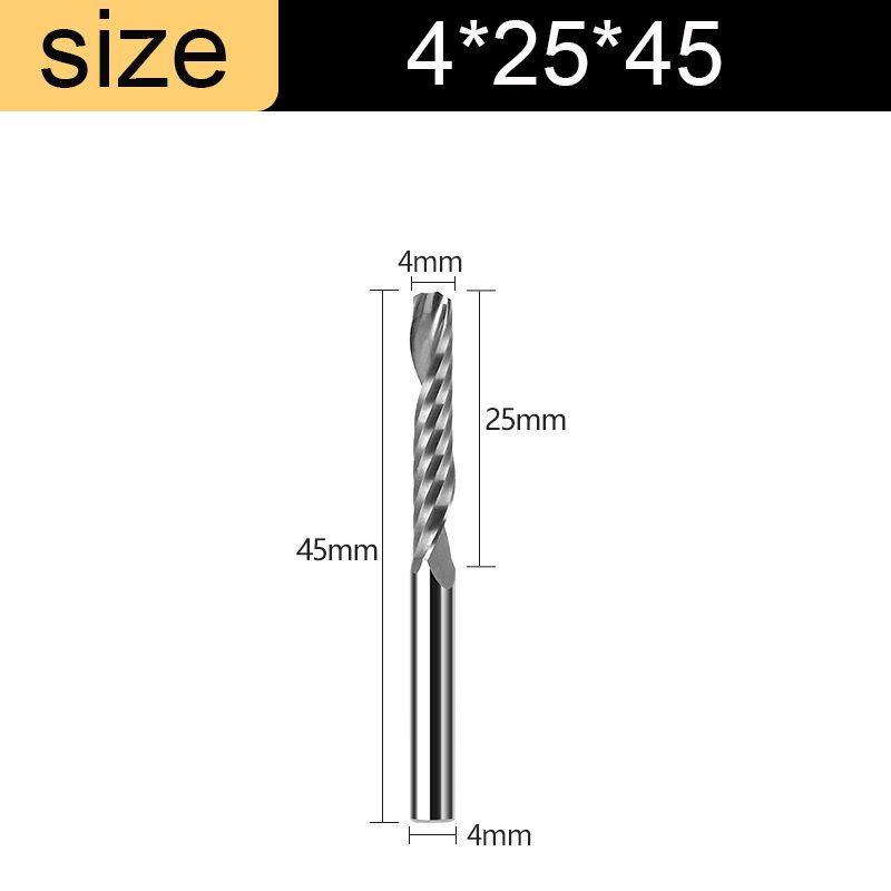 4x4x25 1pcs Fraises à spirale en carbure de tungstène, 1 cannelure, outils CNC pour bois acrylique MDF 3.175 4 6 8mm ""Nipseyteko